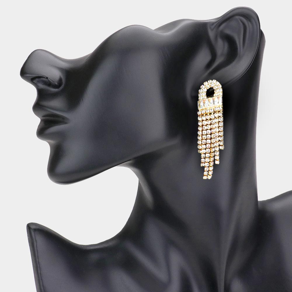 Stone Embellished Rhinestone Drop Fringe Evening Earrings