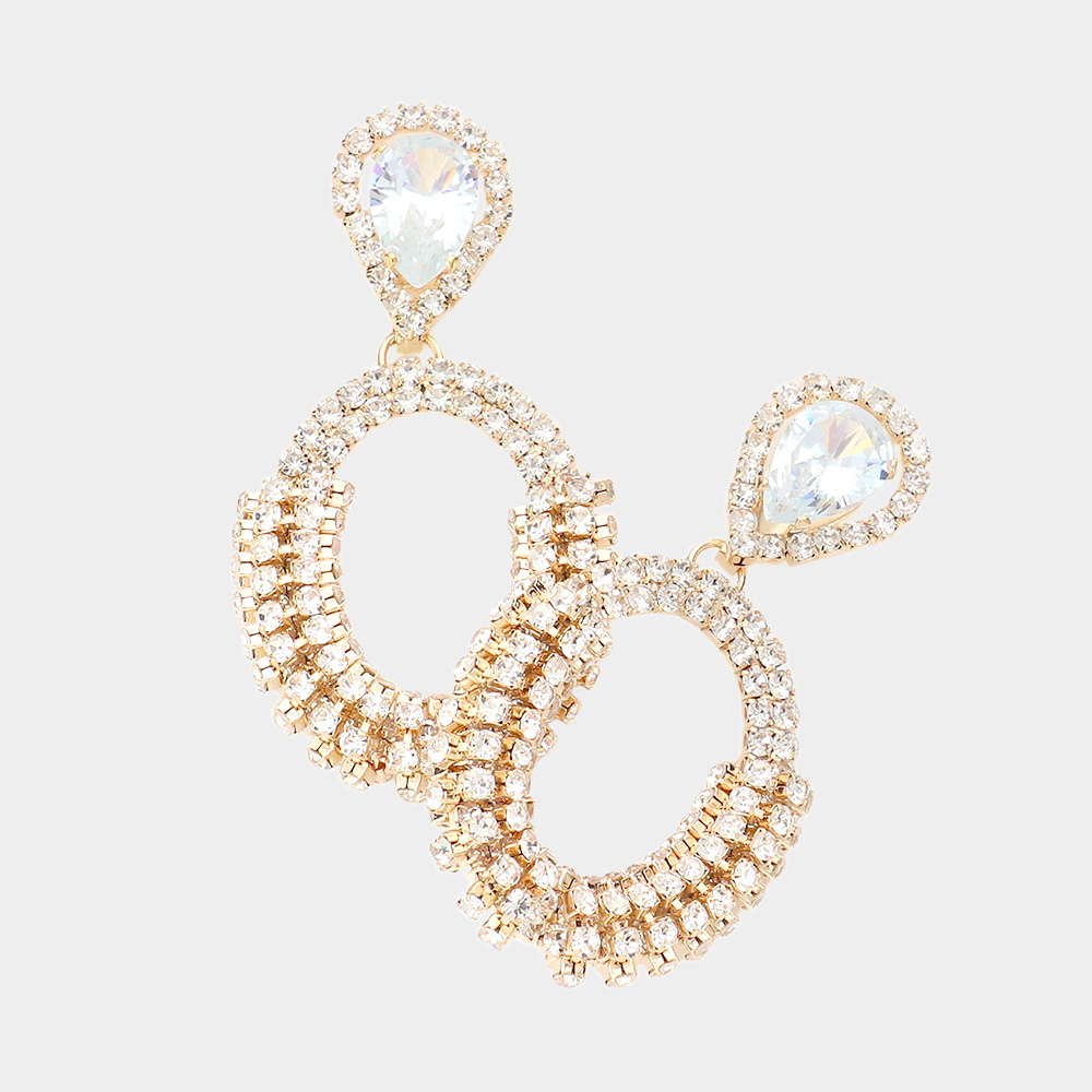 Stone Embellished Rhinestone Pave Oval Dangle Earrings
