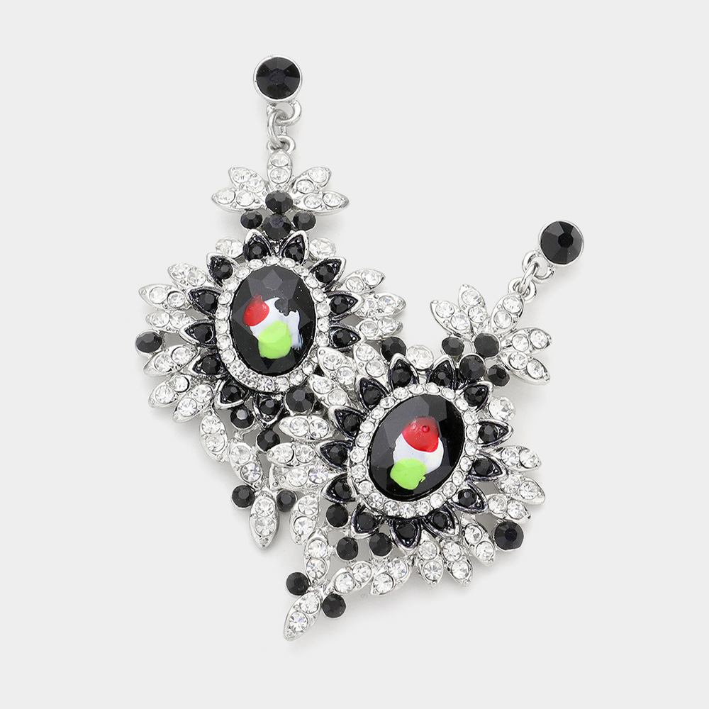 Teardrop Accented Marquise Stone Cluster Evening Earrings
