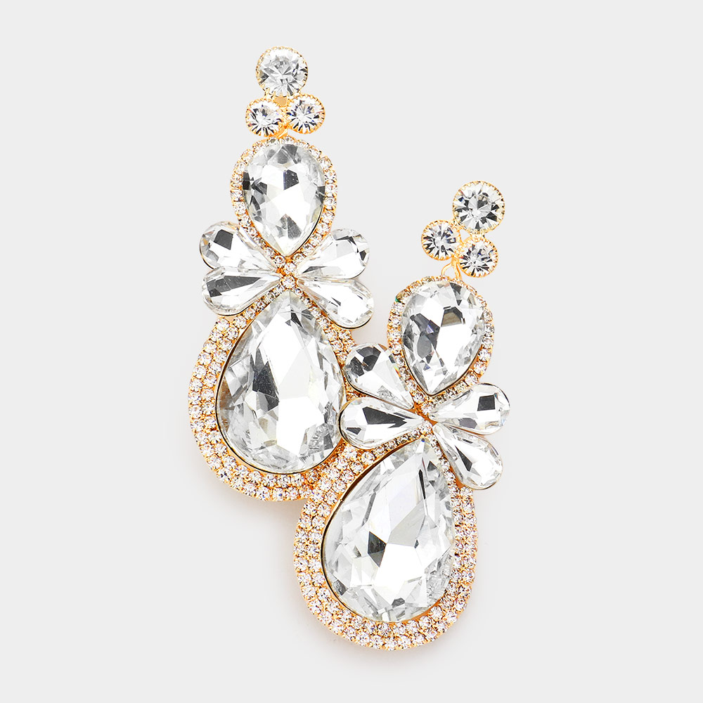 Details • Size : 1.25" X 2.8" • Post Back • Make a striking impression with these bold teardrop statement earrings. Featuring intricate detailing and dazzling stones, they’re ideal for events, parties, or standout everyday looks. • Lead and Nickel Compliant