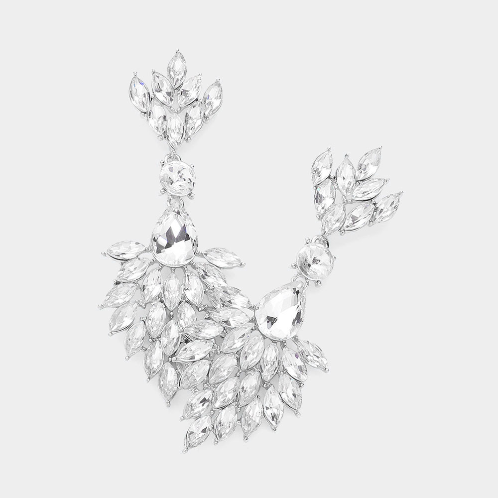 Teardrop Accented Marquise Stone Cluster Dangle Evening Earrings