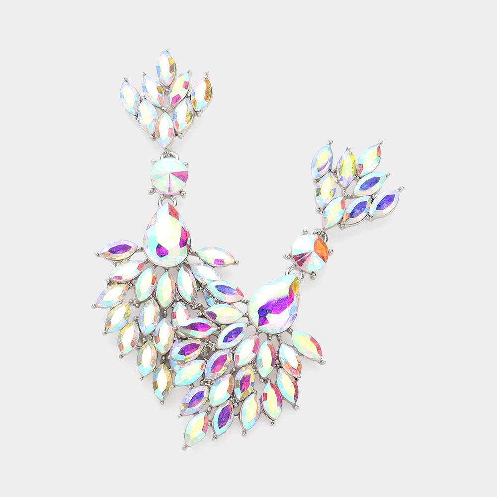 Marquise Stone Cluster Vine Dangle Evening Earrings