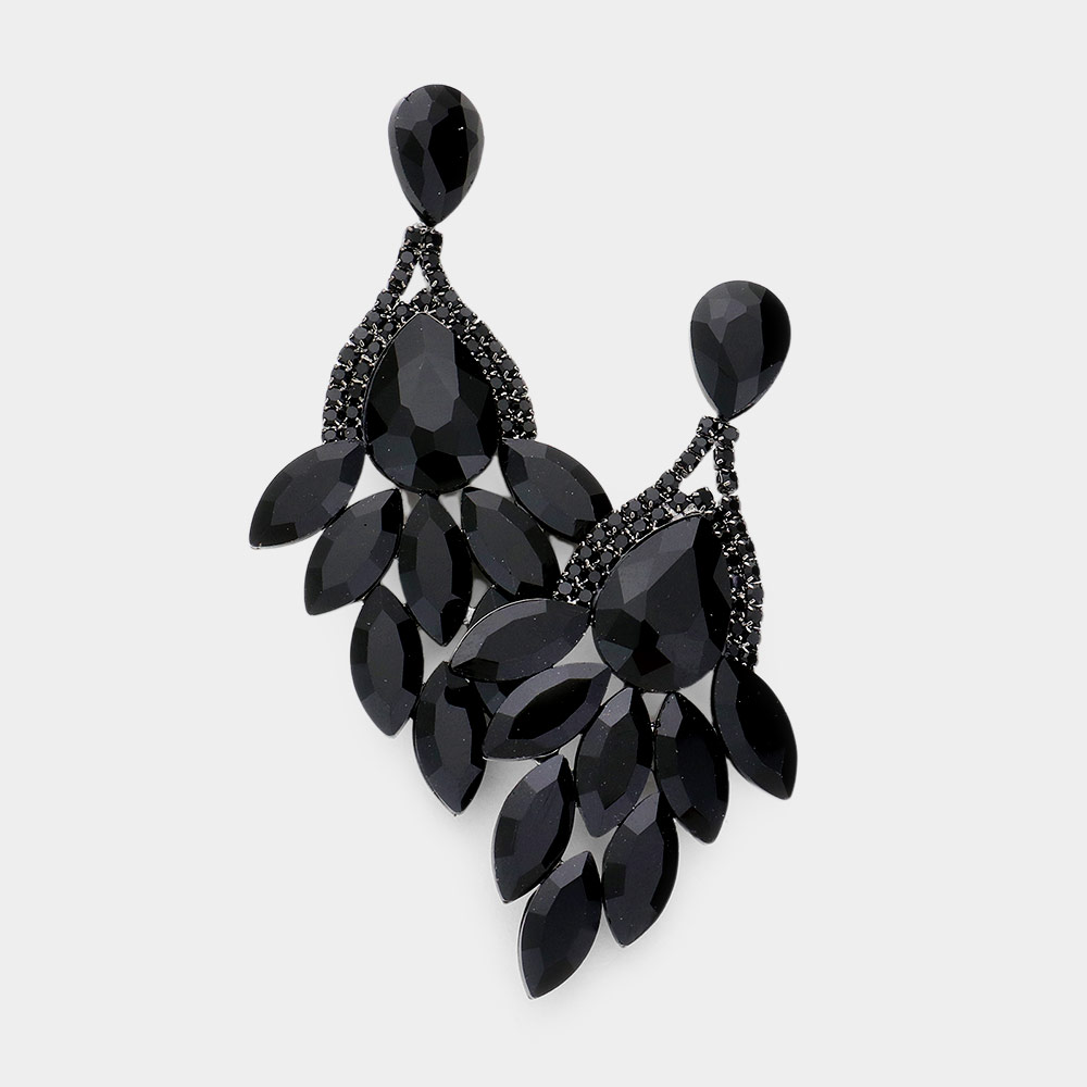 Teardrop Accented Marquise Stone Cluster Evening Earrings