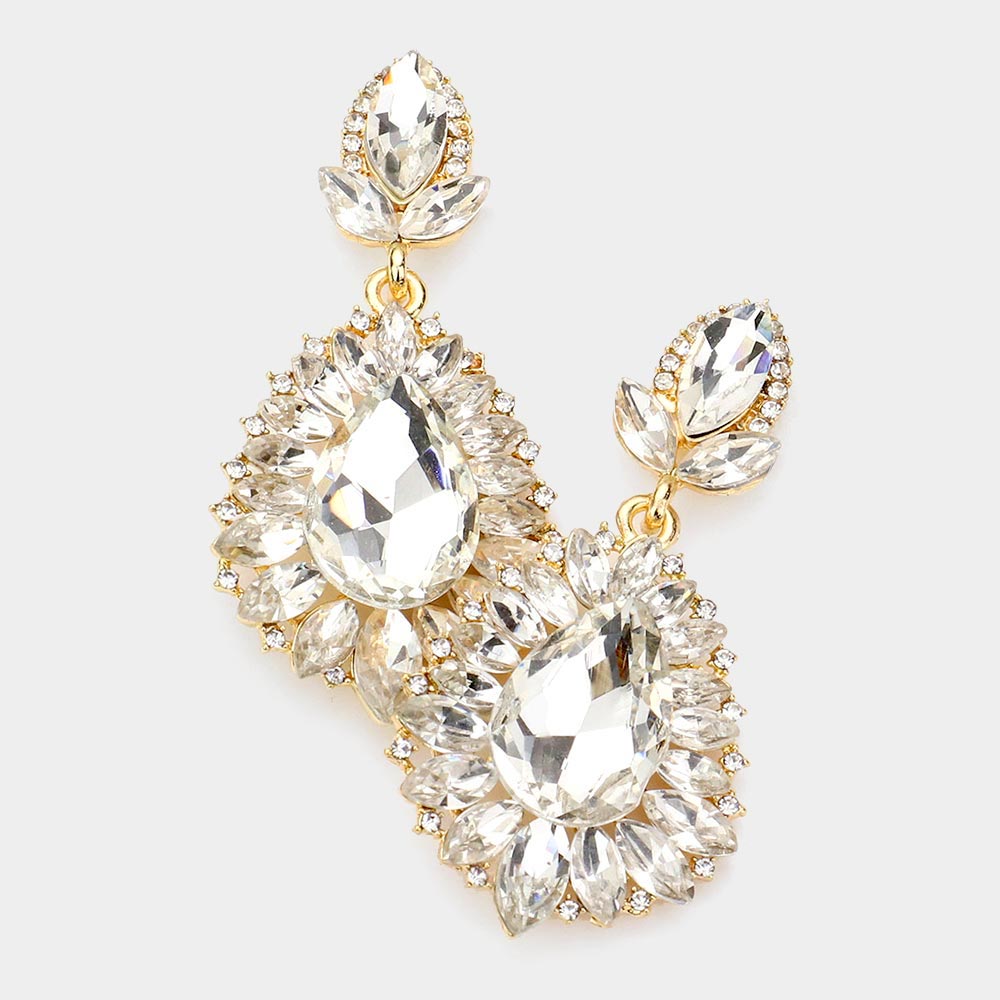 Teardrop Accented Marquise Stone Trimmed Dangle Evening Earrings