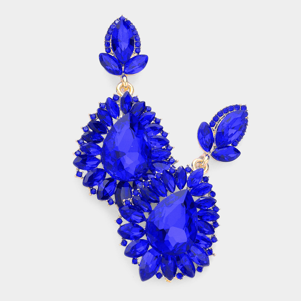 Teardrop Accented Marquise Stone Trimmed Dangle Evening Earrings