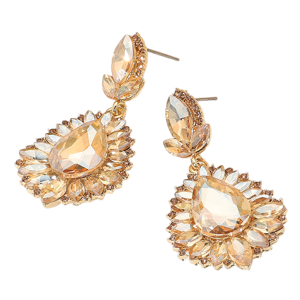 Teardrop Accented Marquise Stone Trimmed Dangle Evening Earrings