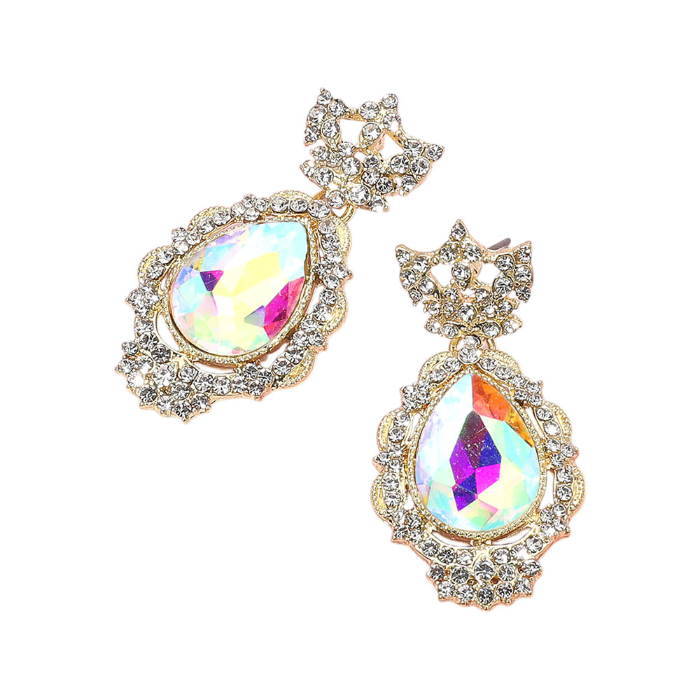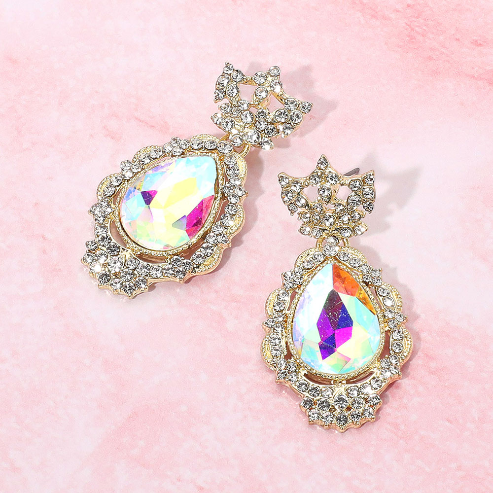 • Vintage-inspired teardrop earrings with dazzling crystal accents and ornate detailing, perfect for weddings, evening occasions, or elegant formal wear.