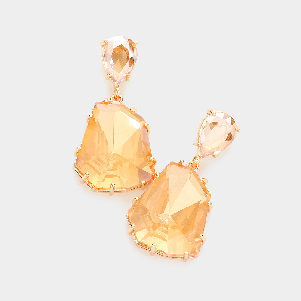 Teardrop Angled Stone Link Dangle Evening Earrings