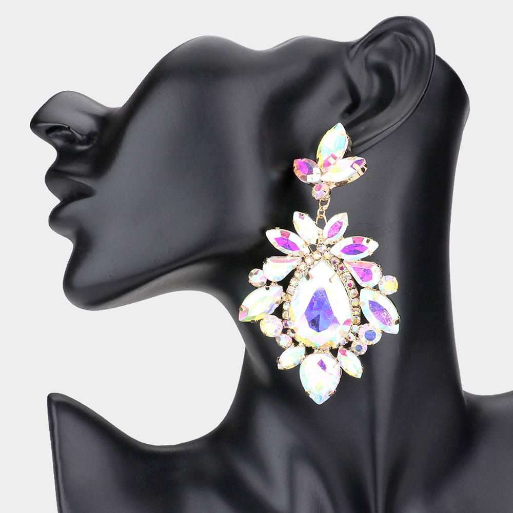 Teardrop Centered Dangle Evening Earrings