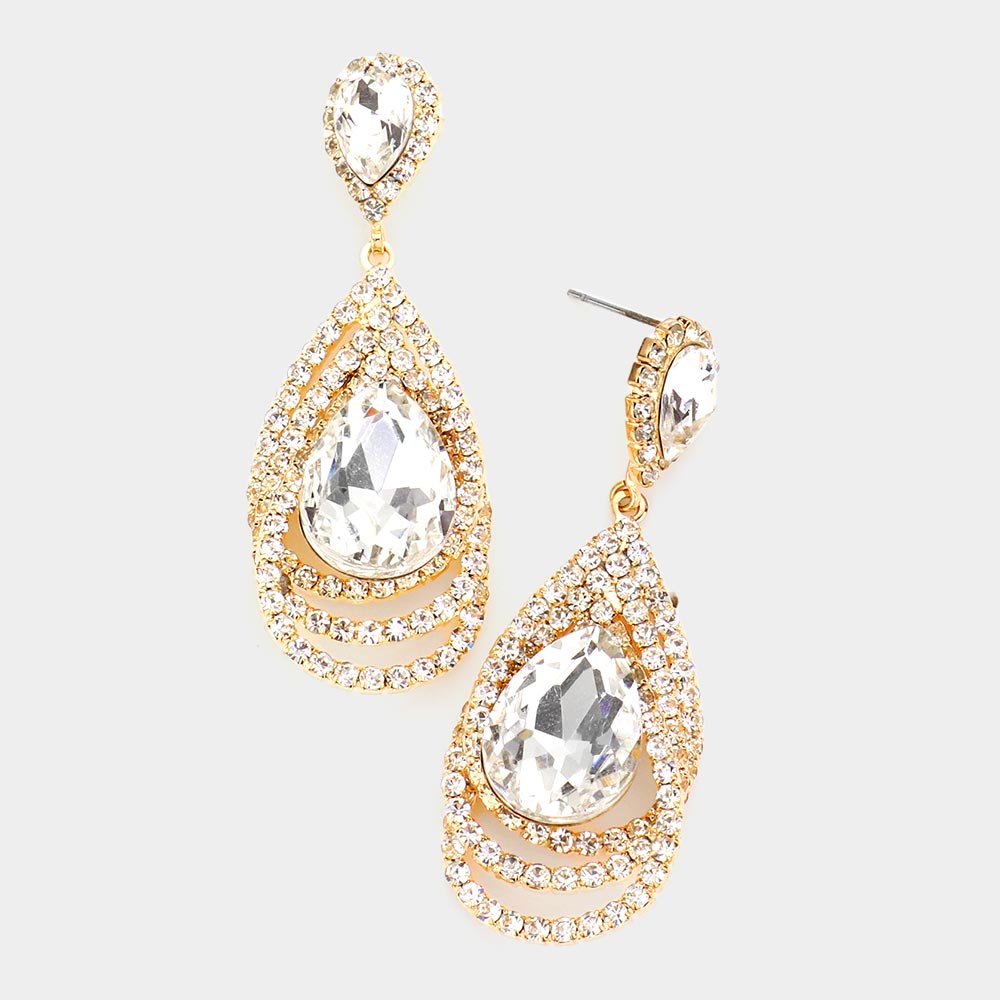 Teardrop Centered Rhinestone Trimmed Dangle Evening Earrings