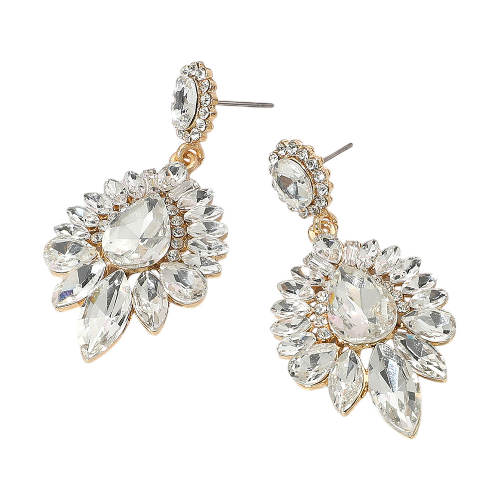 • Turn heads with these dazzling teardrop cluster earrings featuring a radiant, multi-faceted design. Ideal for parties, weddings, and festive occasions, they add the perfect statement to any glamorous outfit.