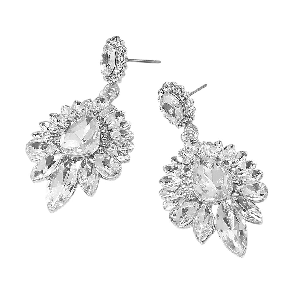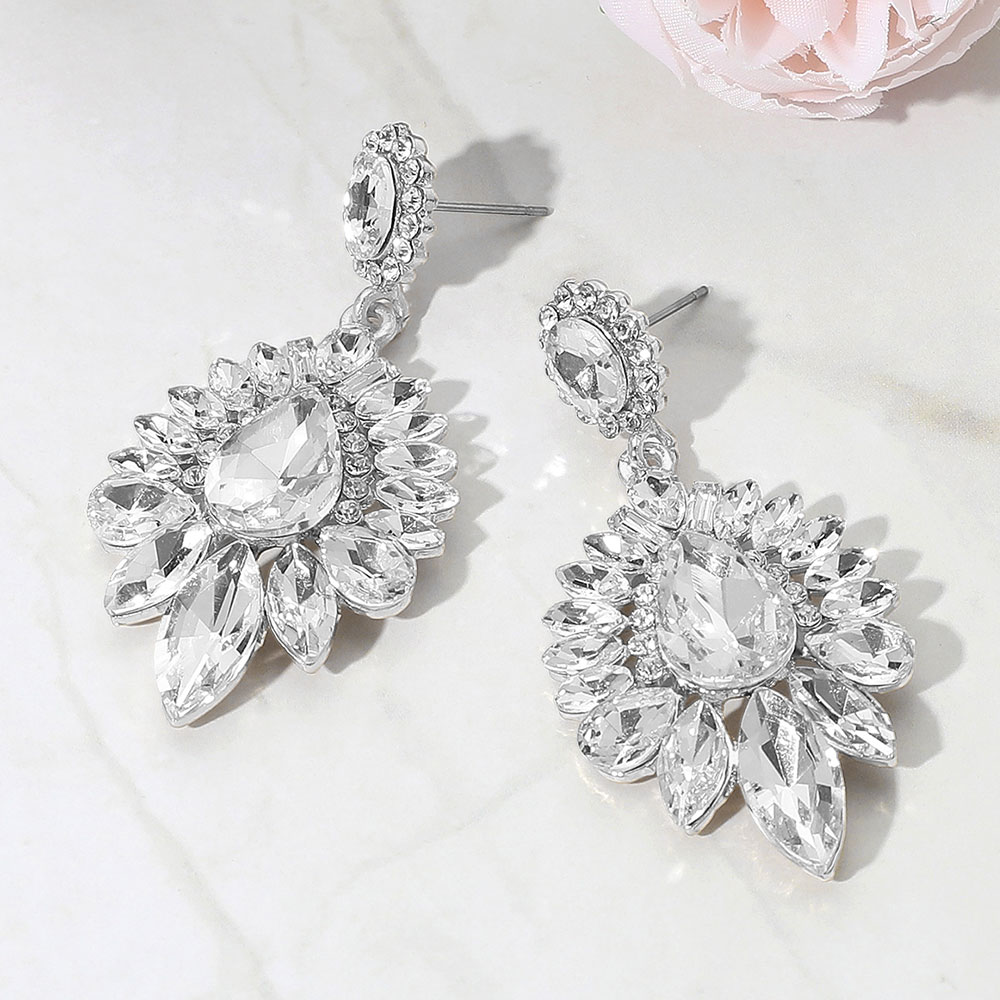 • Turn heads with these dazzling teardrop cluster earrings featuring a radiant, multi-faceted design. Ideal for parties, weddings, and festive occasions, they add the perfect statement to any glamorous outfit.