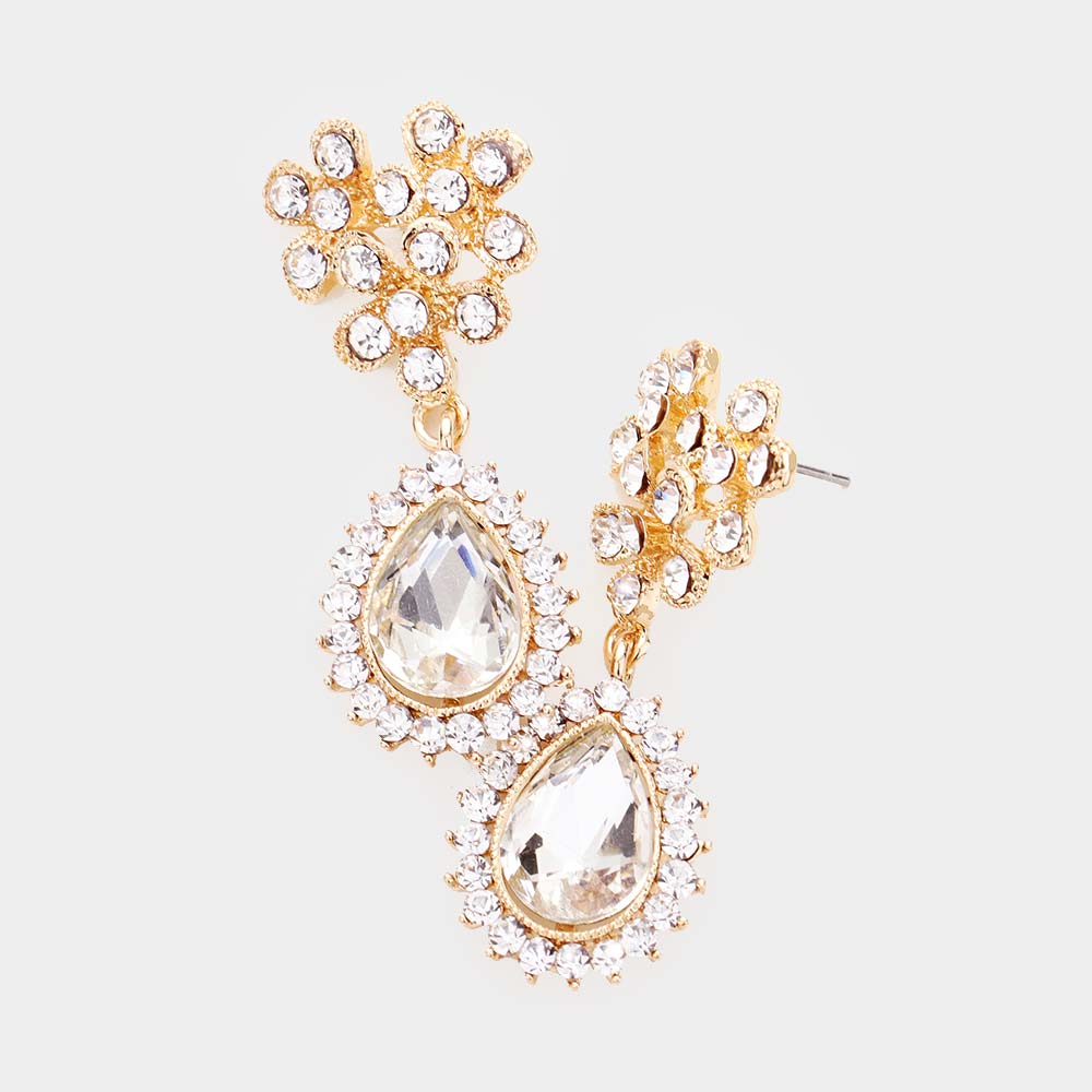 Teardrop Crystal Cluster Rhinestone Evening Earrings