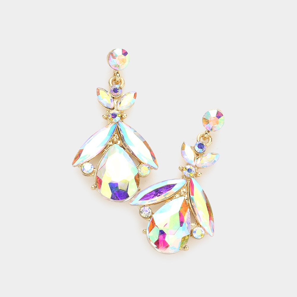 Flower Teardrop Stone Cluster Dangle Evening Earrings