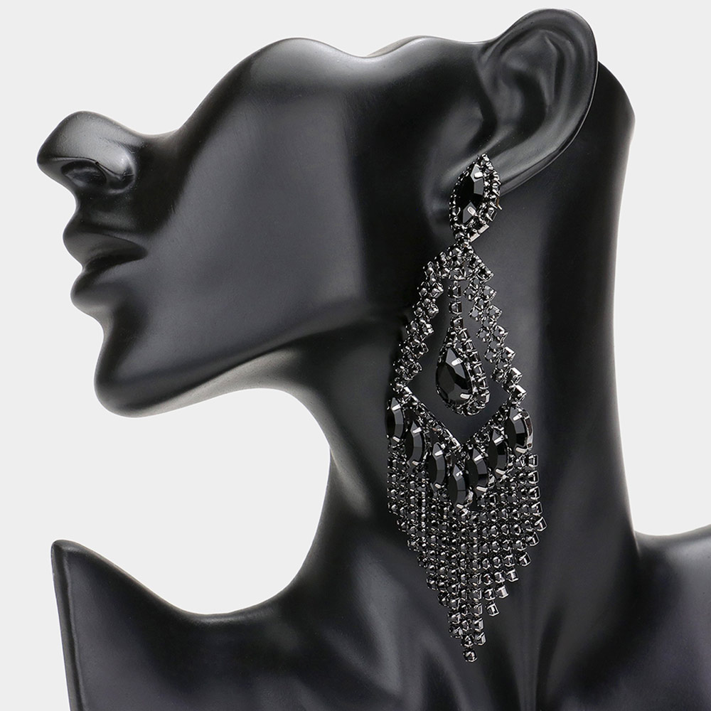 Marquise Stone Cluster Embellished Dangle Evening Earrings