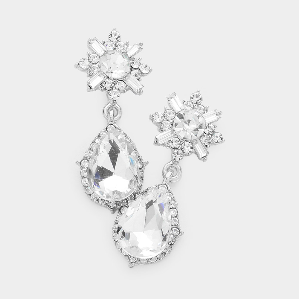 Teardrop Crystal Rhinestone Trim Dangle Evening Earrings