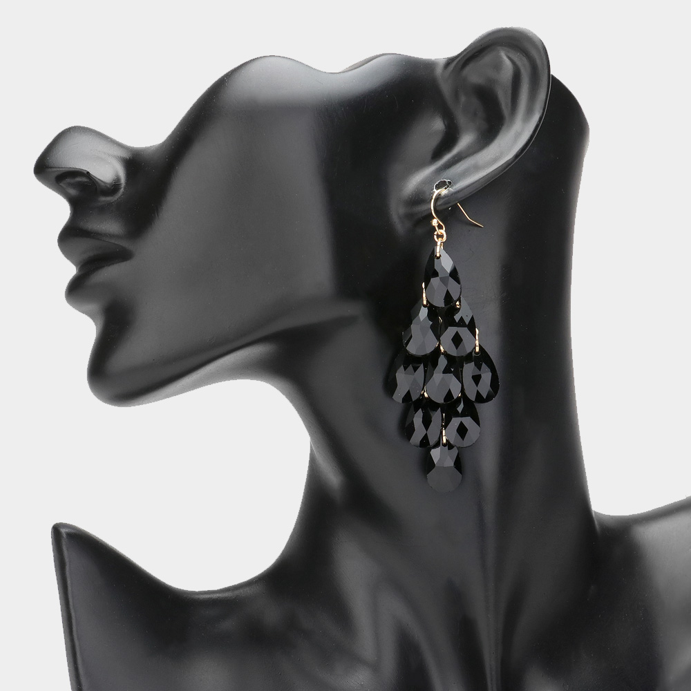 Teardrop Faceted Stone Chandelier Dangle Earrings
