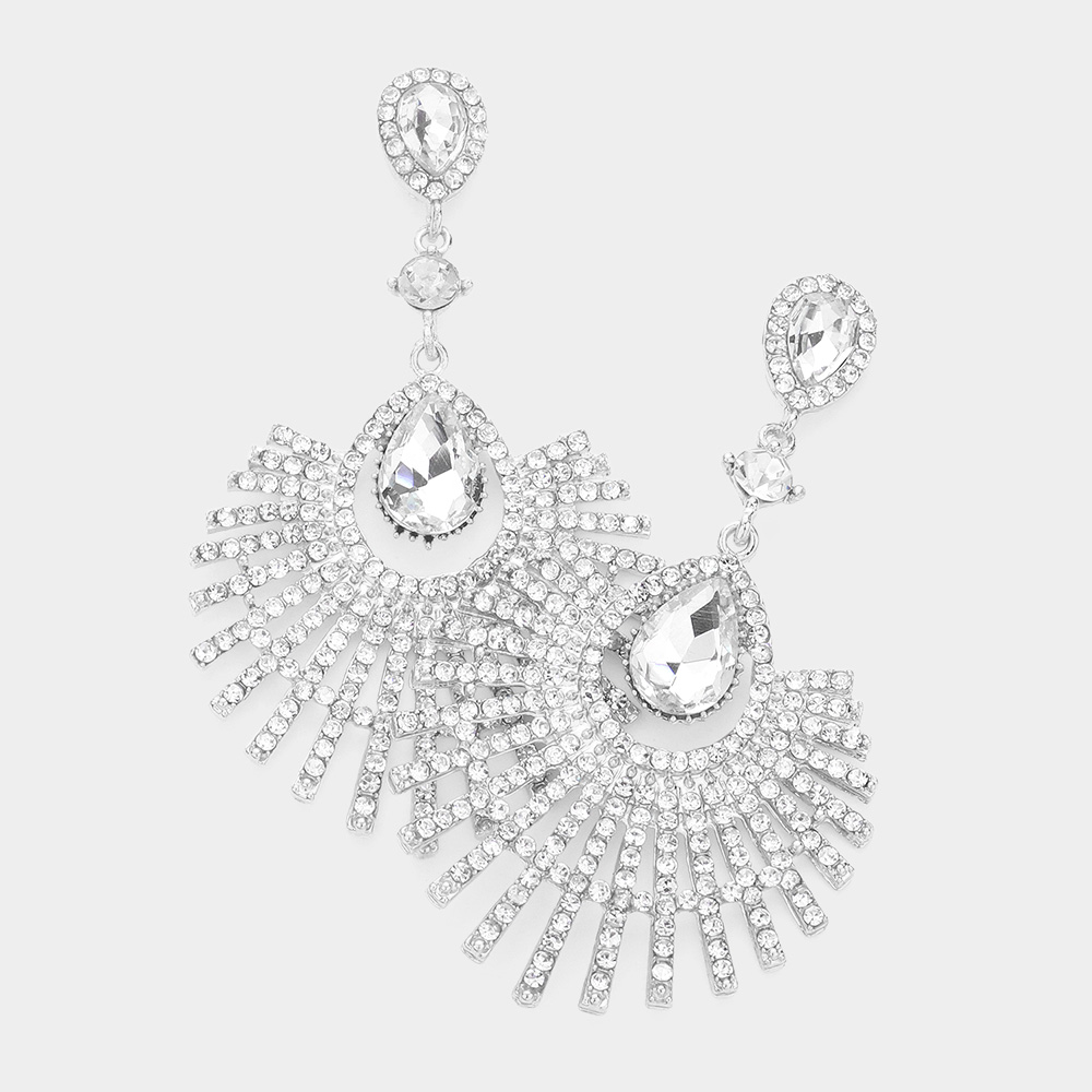 Teardrop Fan Crystal Rhinestone Evening Earrings