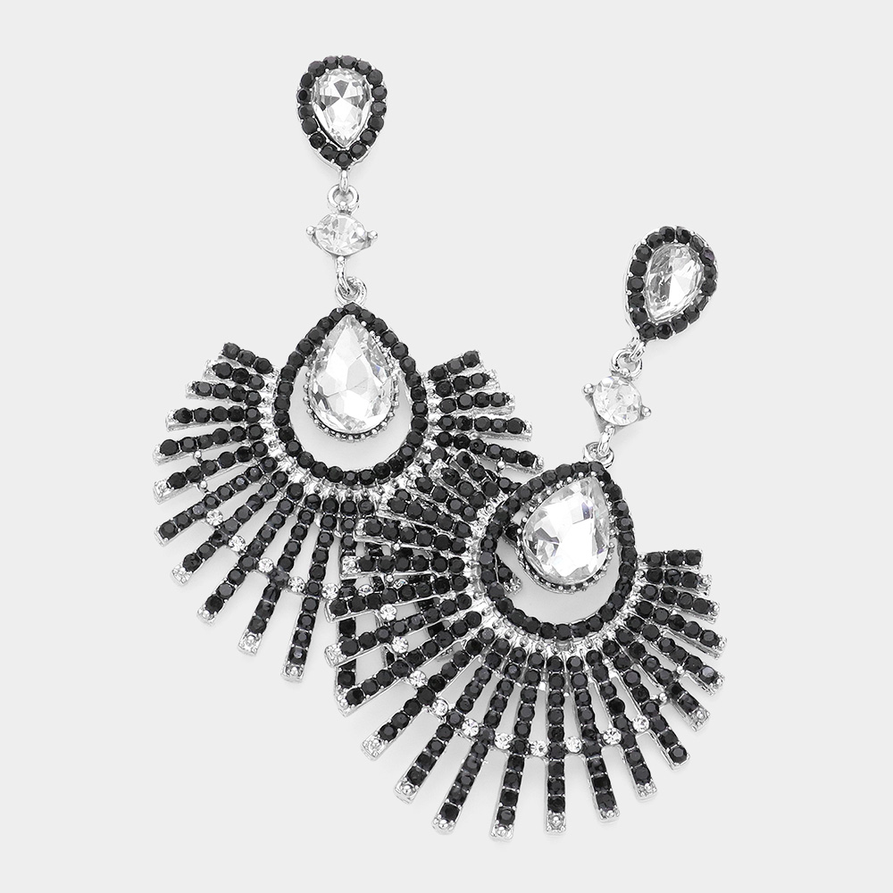 Teardrop Fan Crystal Rhinestone Evening Earrings