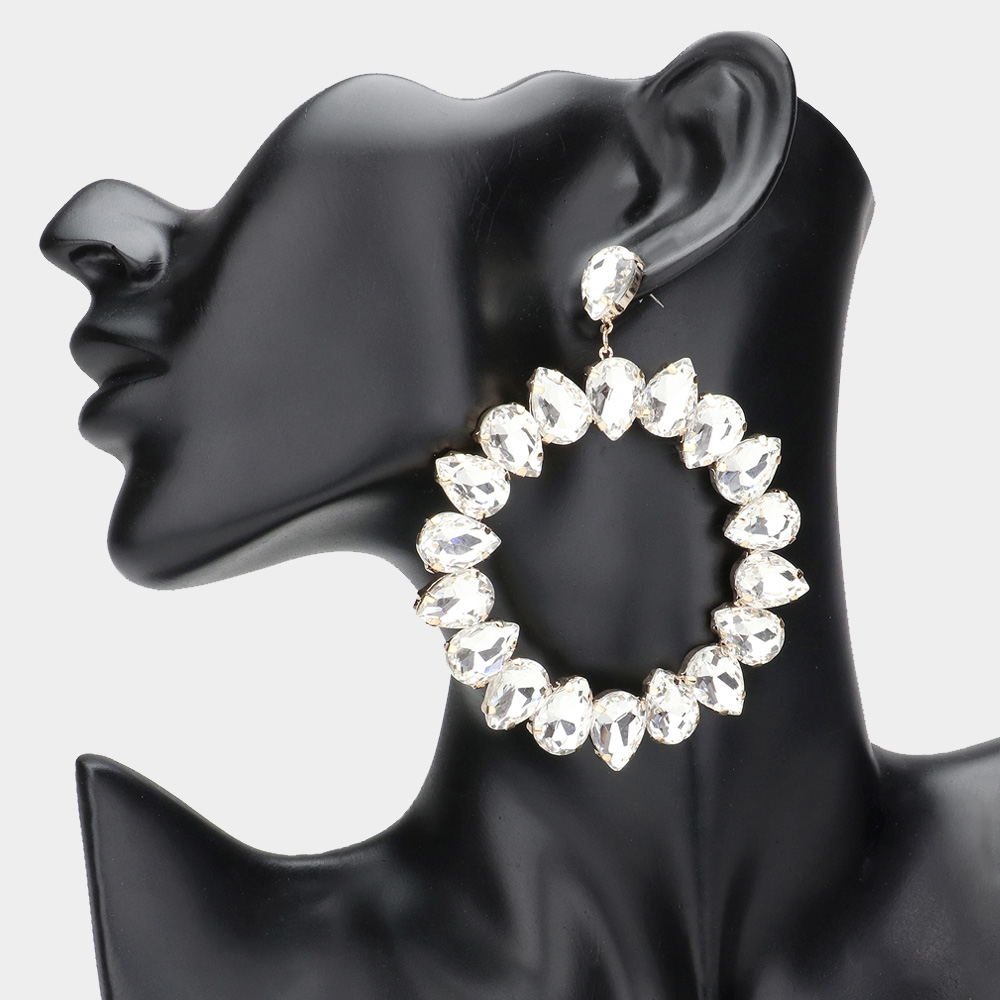 Teardrop Glass Crystal Open Circle Evening Earrings
