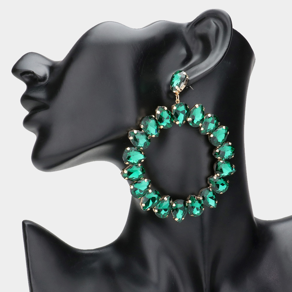 Teardrop Glass Crystal Open Circle Evening Earrings