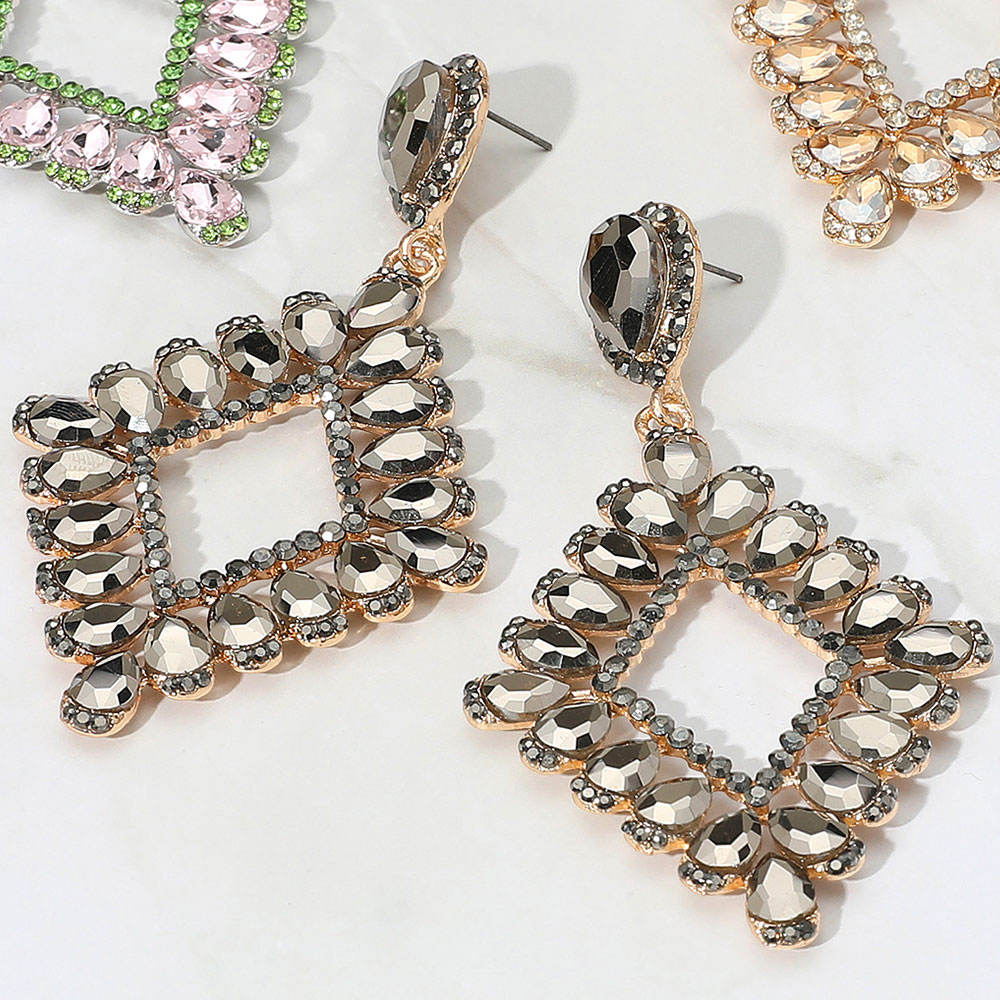Teardrop Glass Stone Cluster Trip Open Rhombus Dangle Evening Earrings