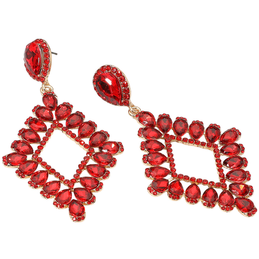 Teardrop Glass Stone Cluster Trip Open Rhombus Dangle Evening Earrings Teardrop Glass Stone Cluster Trip Open Rhombus Dangle Evening Earrings Teardrop Glass Stone Cluster Trip Open Rhombus Dangle Evening Earrings