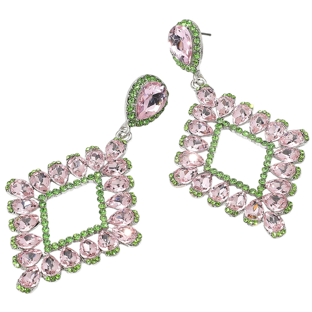 Teardrop Glass Stone Cluster Trip Open Rhombus Dangle Evening Earrings