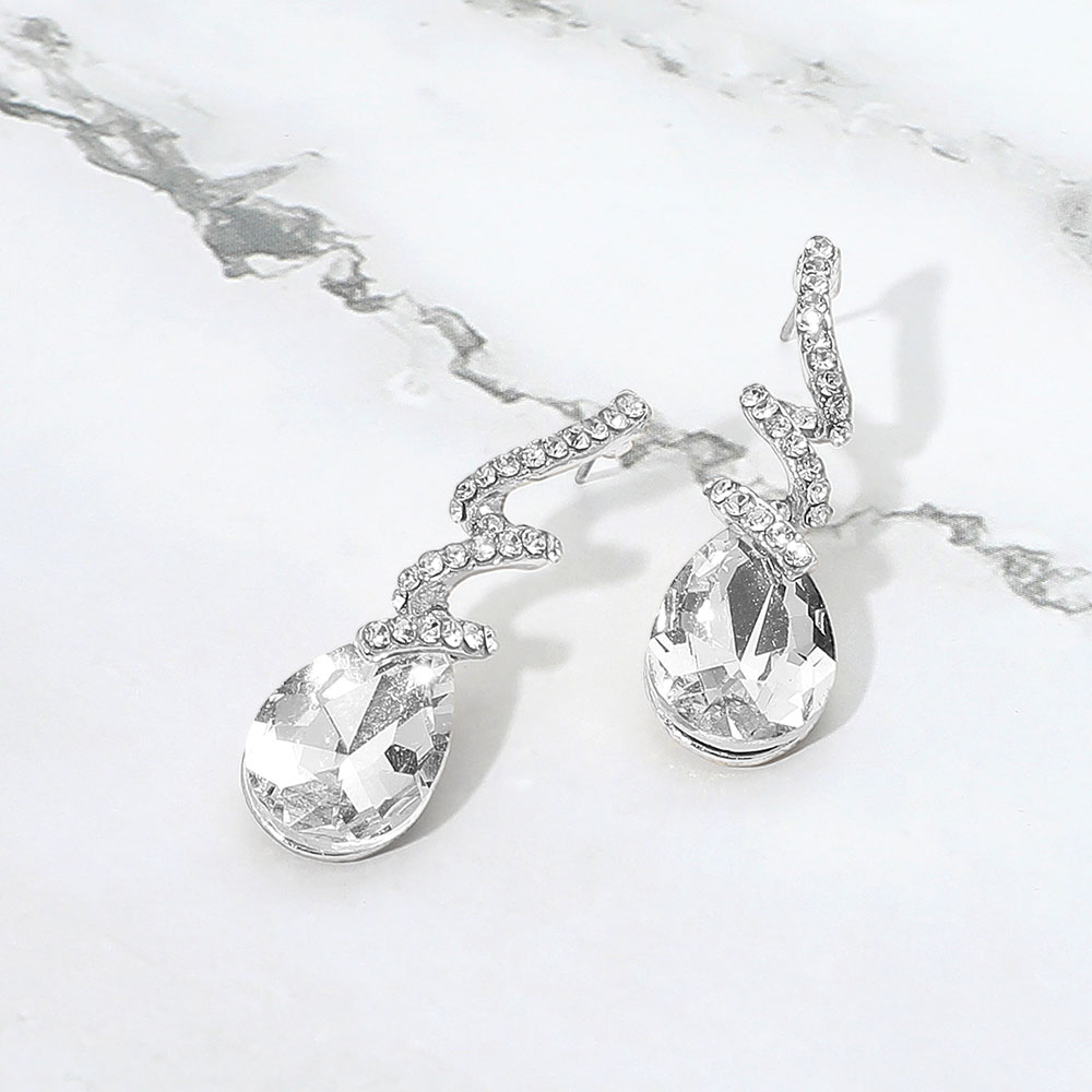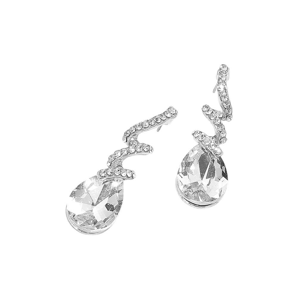 Teardrop Glass Stone Drop Stone Paved Swirl Evening Earrings