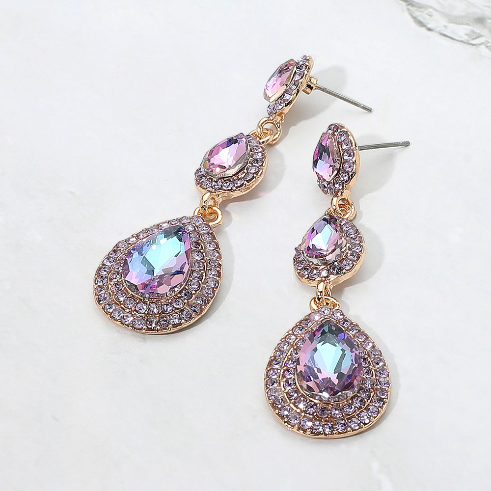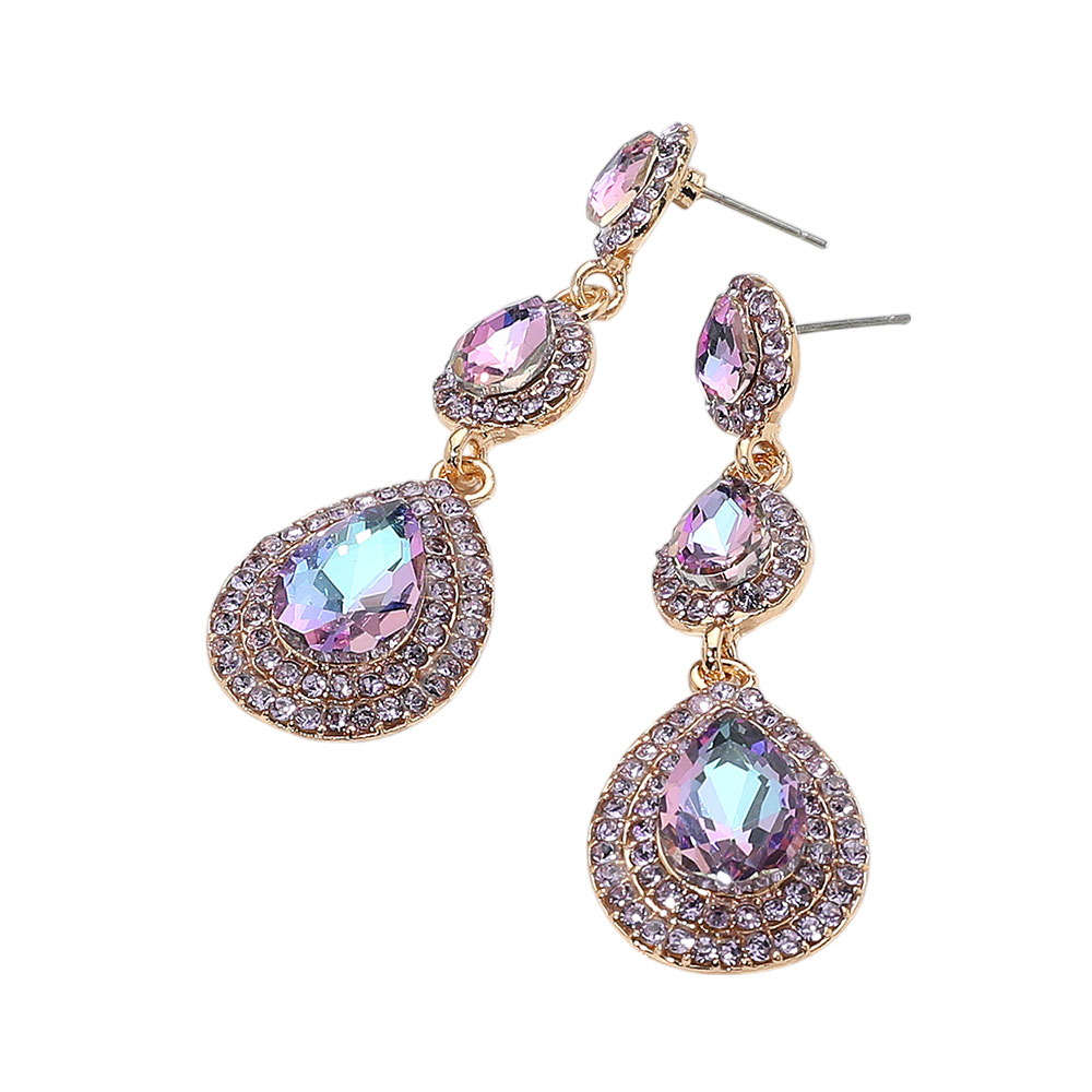 Teardrop Glass Stone Link Drop Dangle Evening Earrings