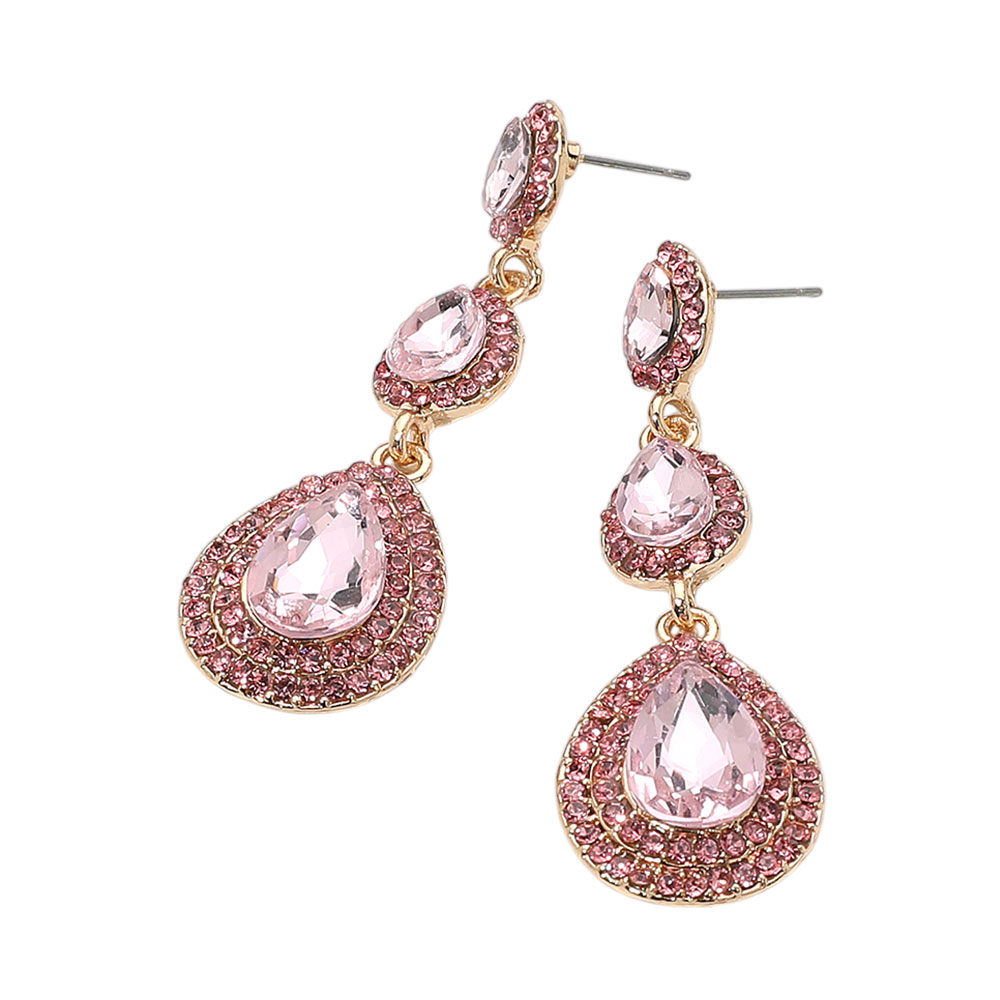 Teardrop Glass Stone Link Drop Dangle Evening Earrings