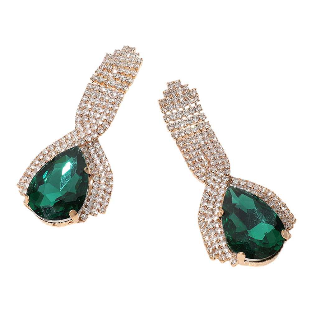 Teardrop Glass Stone Pointed Rhinestone Paved Evening Earrings
