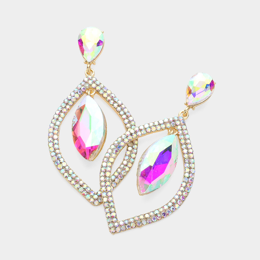 Teardrop Marquise Stone Accented Dangle Evening Earrings
