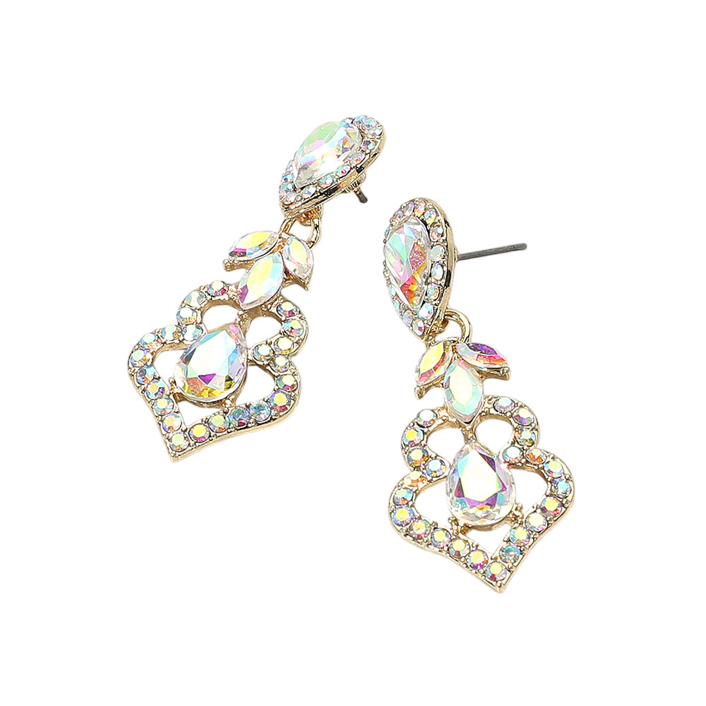 Teardrop Marquise Stone Accented Dangle Evening Earrings