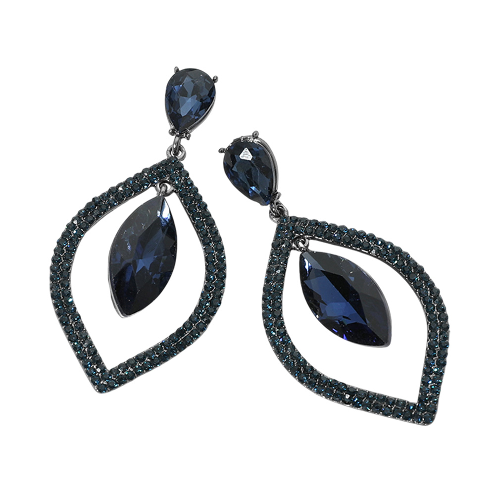 Teardrop Marquise Stone Accented Dangle Evening Earrings