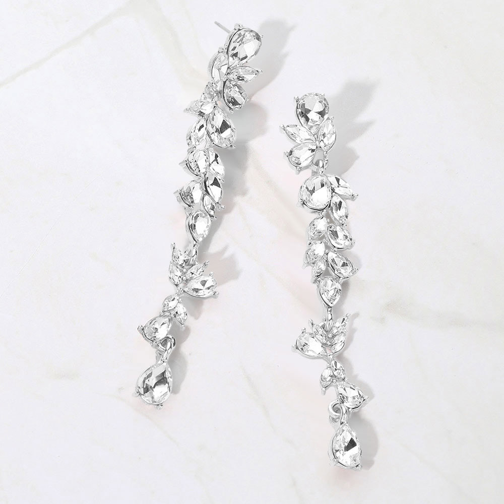 Teardrop Marquise Stone Cluster Embellished Dropdown Evening Earrings