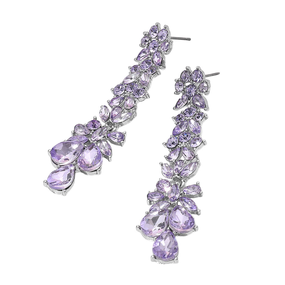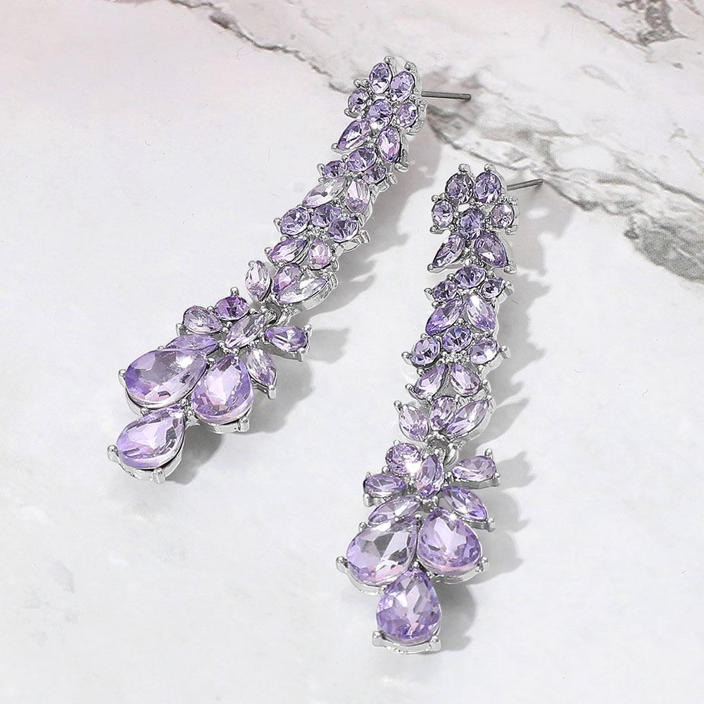 • Elegant long drop earrings featuring shimmering crystals in a floral-inspired design. Perfect for formal occasions like weddings, proms, or evening galas, these earrings add a dazzling and graceful accent.