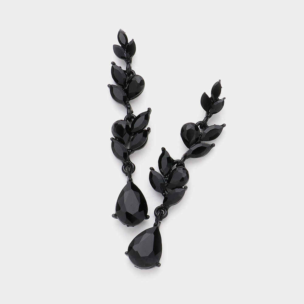 Details • Size : 0.5" X 2.5" • Post Back • Chic dangle earrings featuring a cascading leaf design and sparkling teardrop shapes. Perfect for special occasions, adding elegance and shine to any formal or evening outfit. • Lead and Nickel Compliant