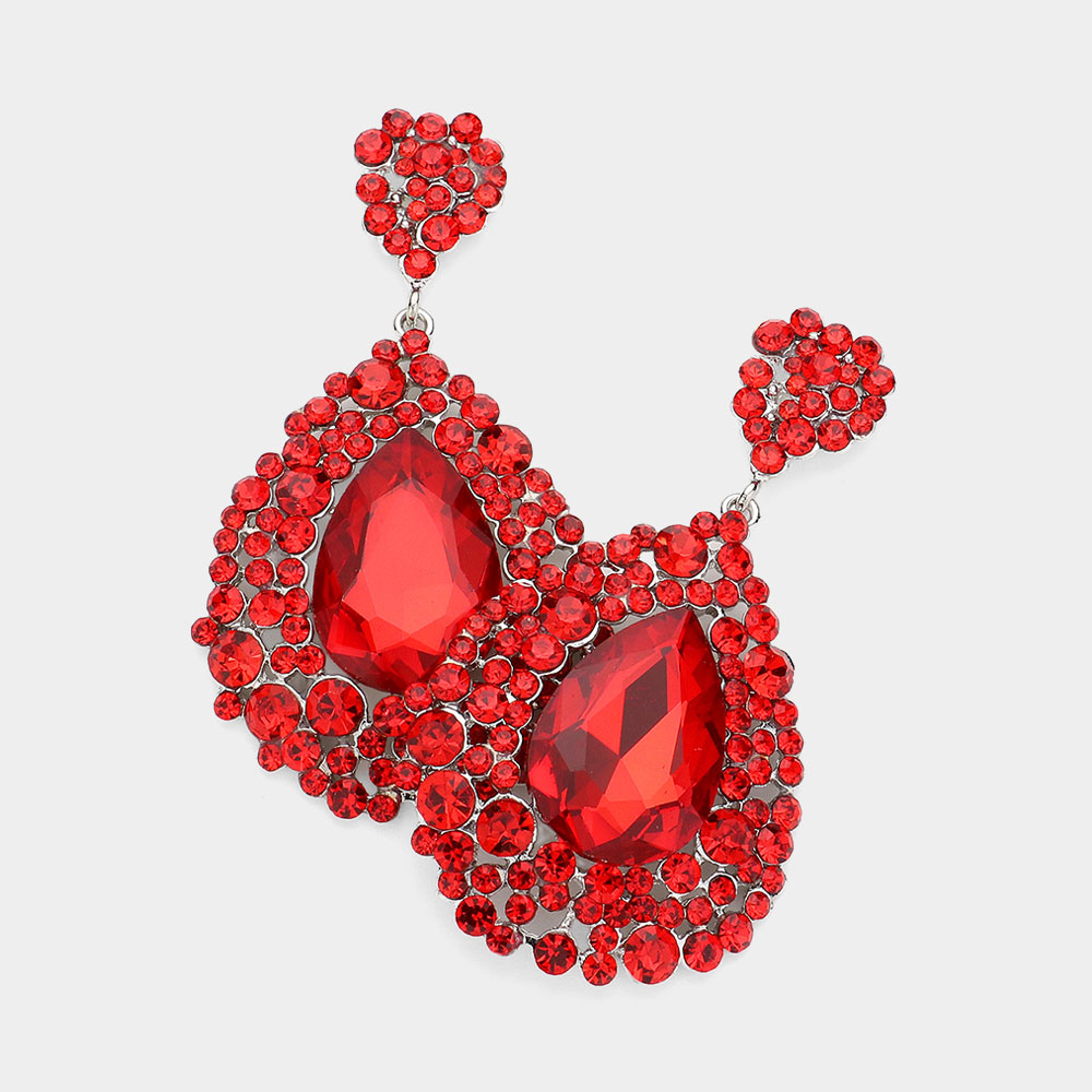 Teardrop Pointed Rhinestone Embellished Dangle Evening Earrings