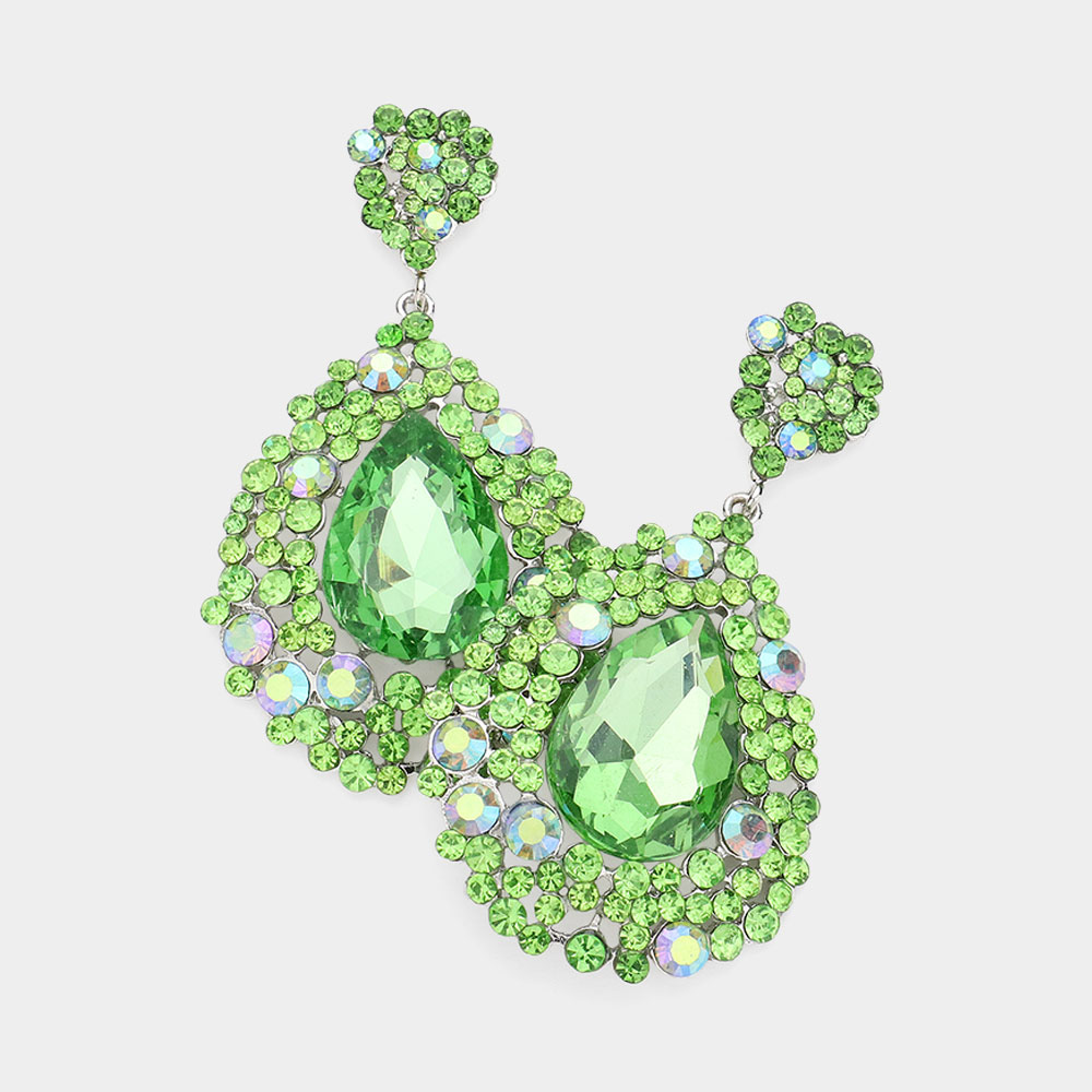Teardrop Pointed Rhinestone Embellished Dangle Evening Earrings