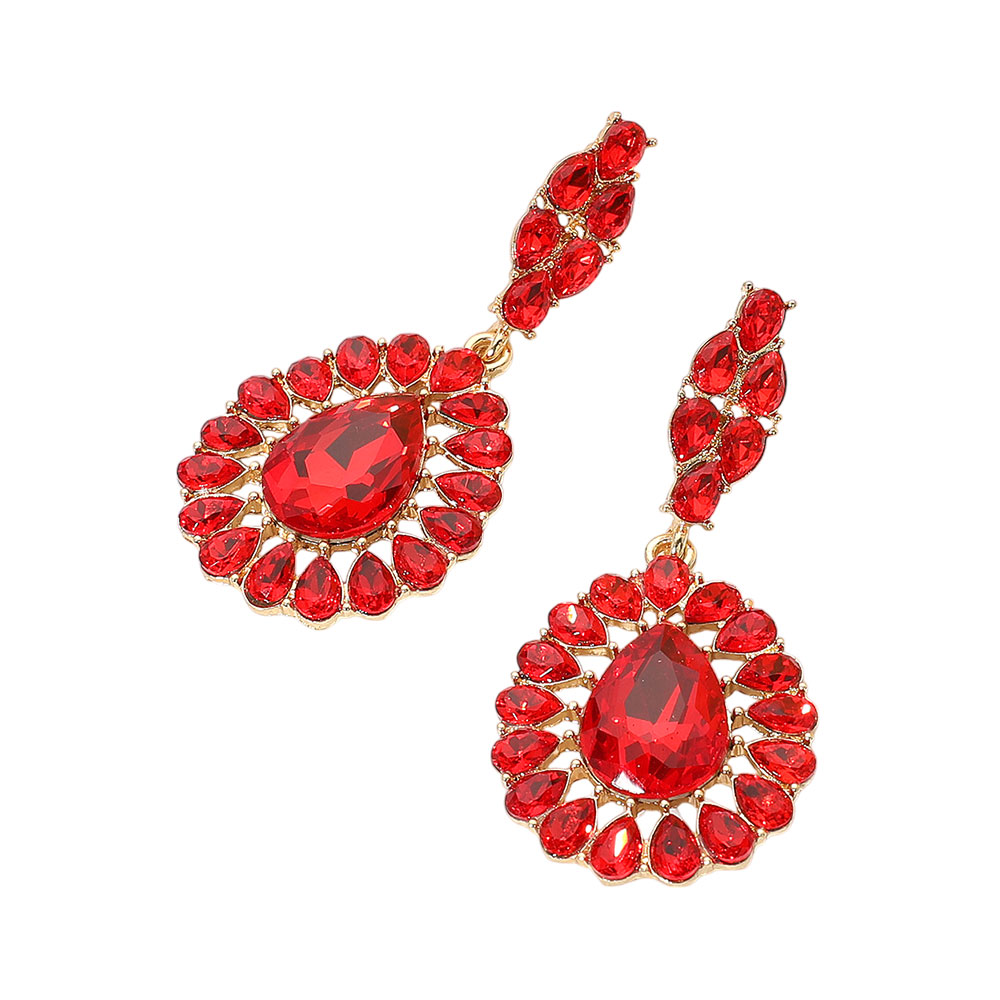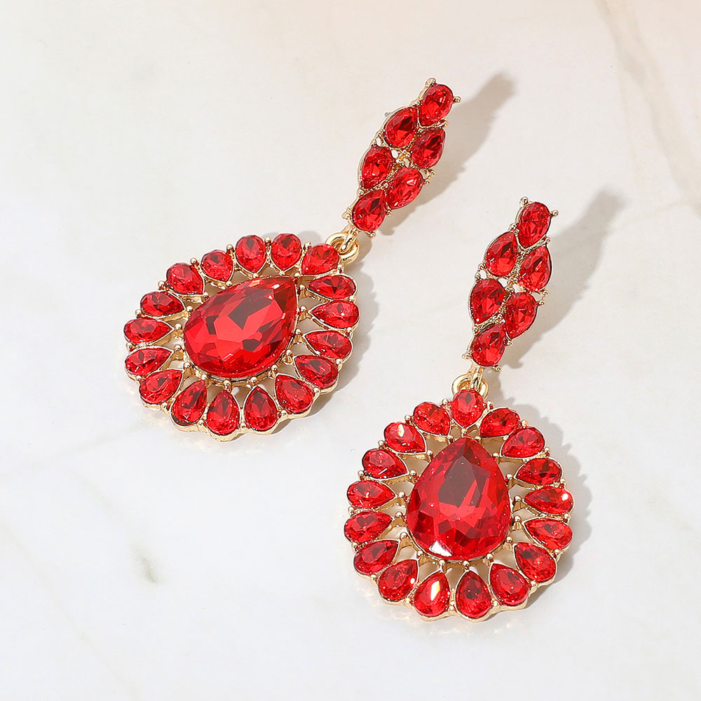Oversized Glass Stone Cluster Dangle Evening Earrings
