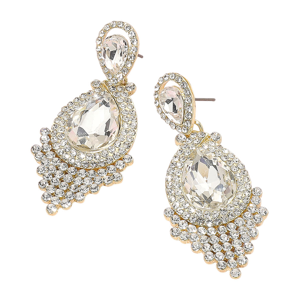 Teardrop Stone Accented Dangle Evening Earrings