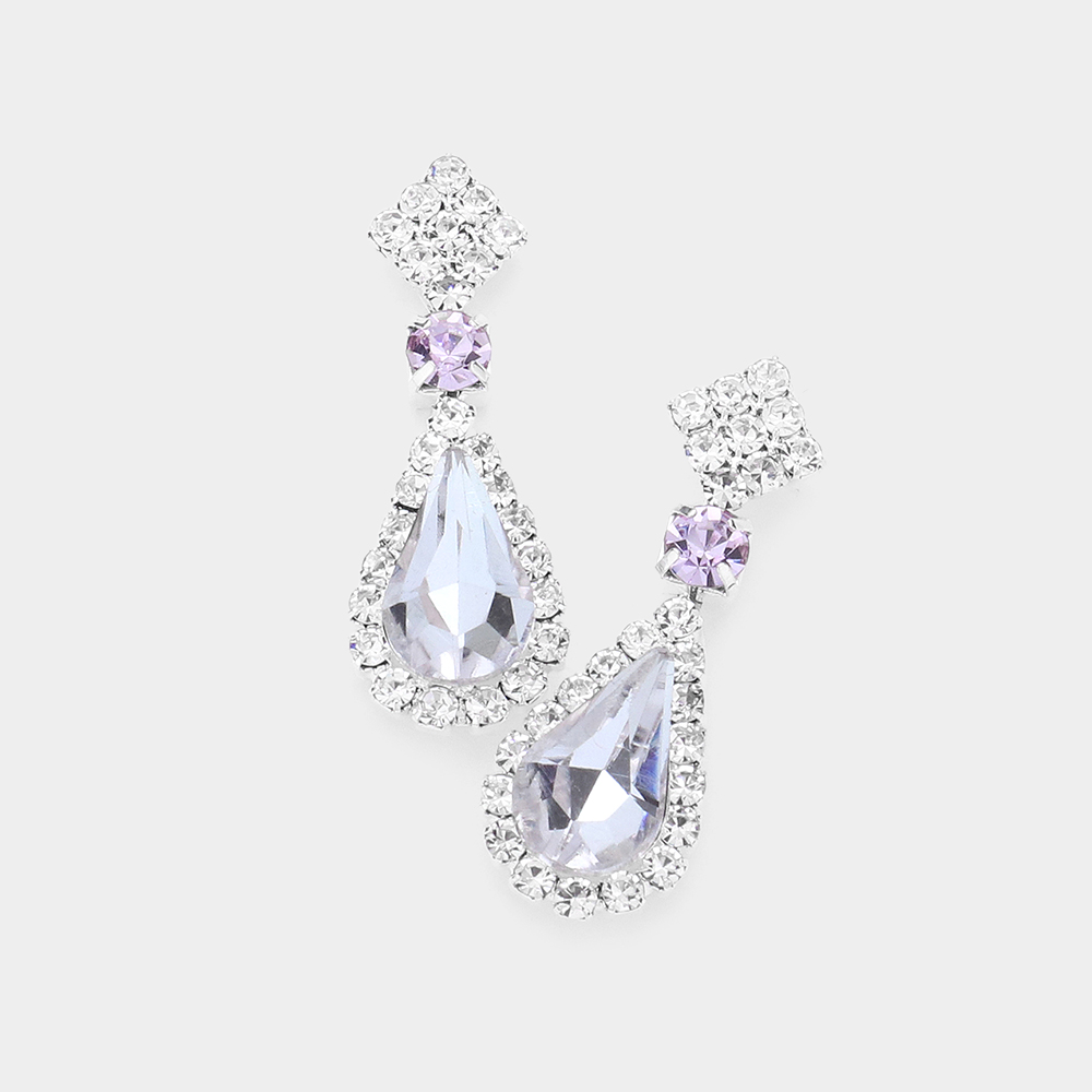 Teardrop Stone Accented Dangle Evening Earrings
