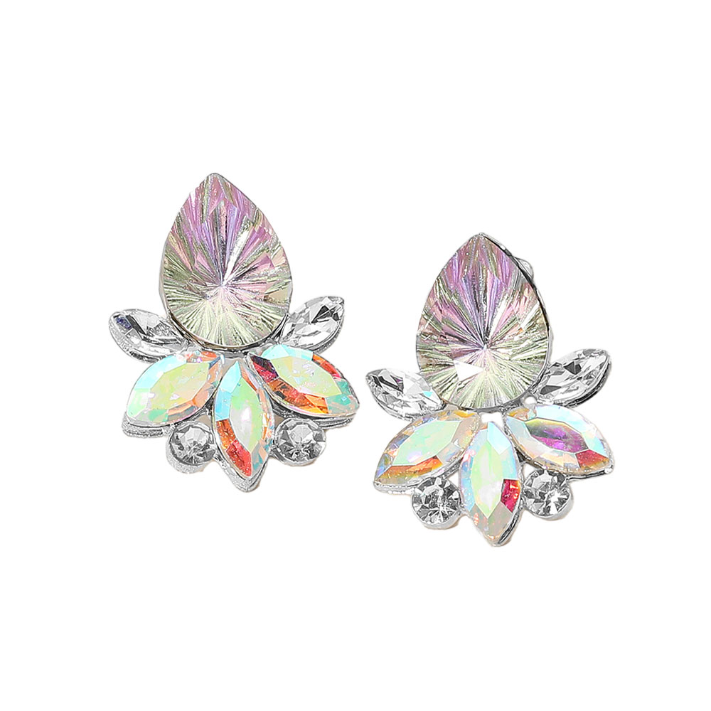 Details • Size : 1" X 1.25" • Post Back • Chic and modern crystal stud earrings with a unique leaf-shaped design. Ideal for weddings, events, or everyday glamour. Lightweight, stylish, and perfect for adding sparkle to any outfit. • Lead and Nickel Compliant