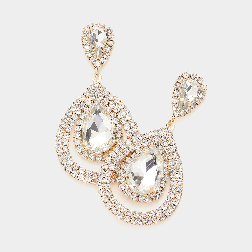 Teardrop Stone Centered Dangle Evening Earrings