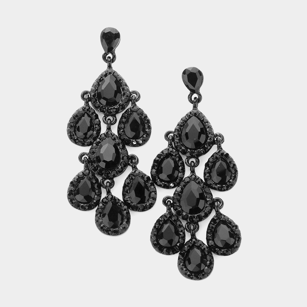 Oversized Pave Glass Teardrop Chandelier Evening Earrings