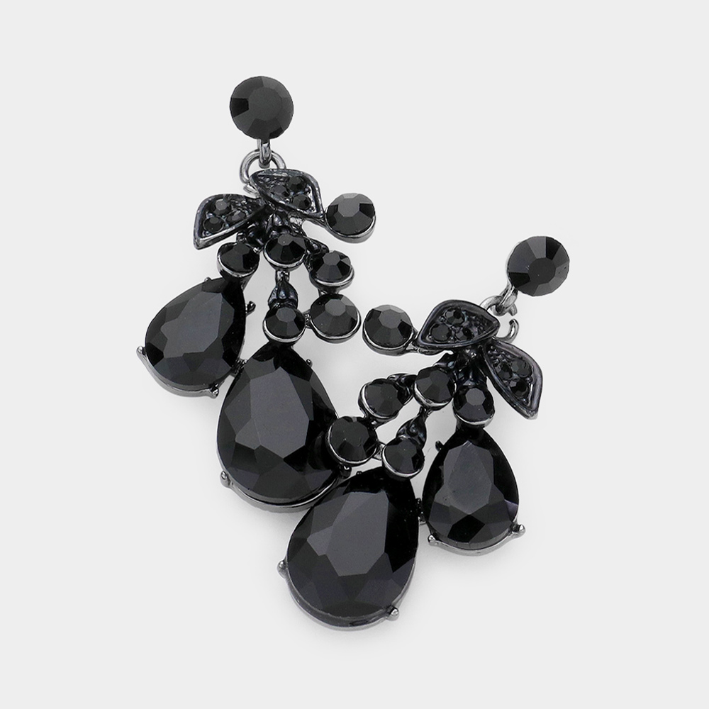 Teardrop Stone Cluster Dangle Evening Earrings