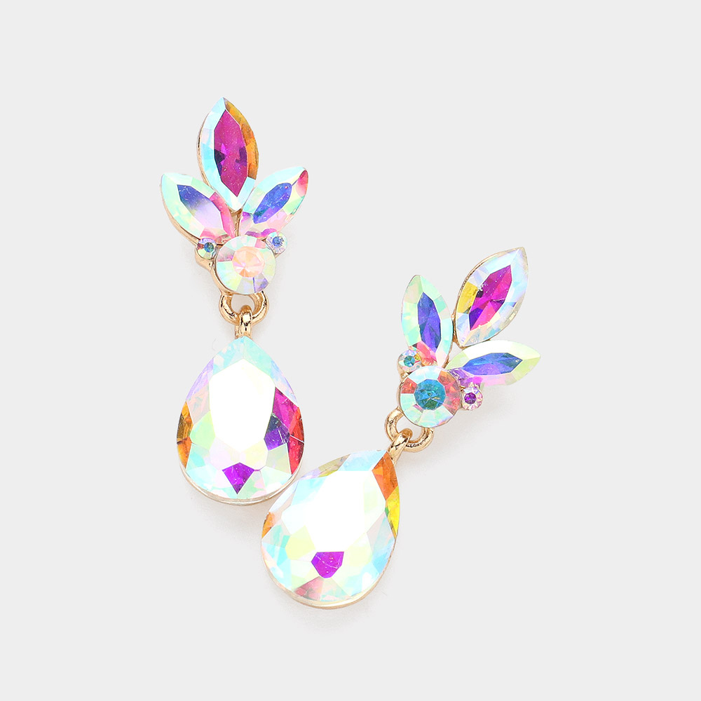 Glass Stone Embellished Diamond Frame Evening Earrings