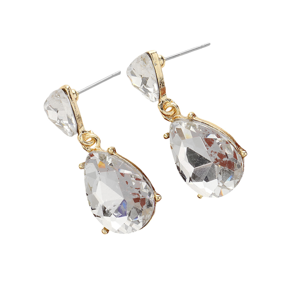 Flower Marquise CZ Stone Cluster Dangle Evening Earrings