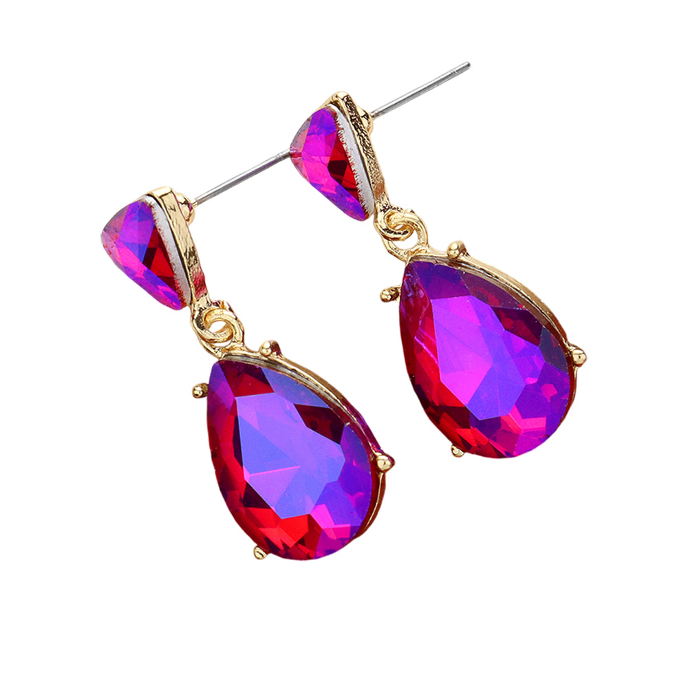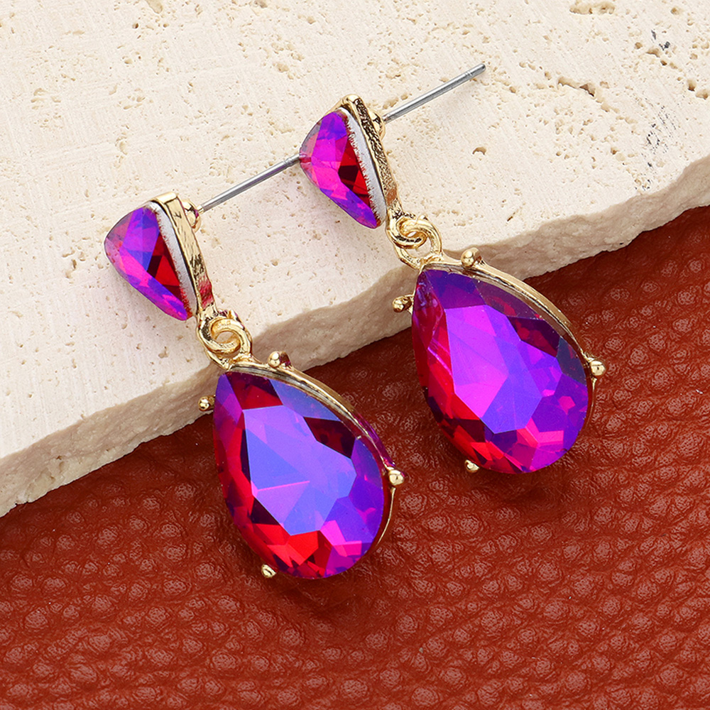 CZ Rectangle Stone Cluster Pointed Evening Stud Earrings